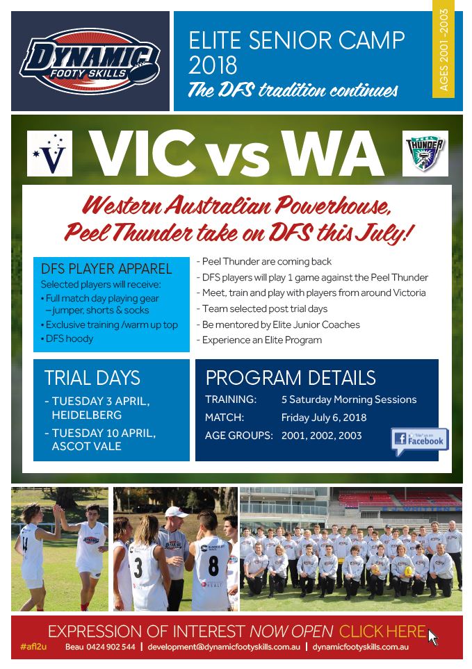 Dynamic Footy Skills are running trial days on the 3rd and 10th of April to participate in their elite camp and possibly a game against Peel Thunder.