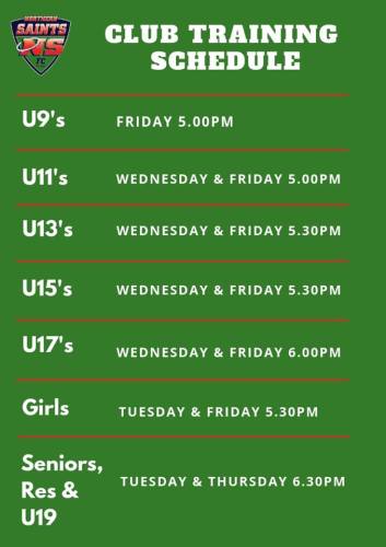 Please make sure to take note of you or your child’s training times, these should see us through to the end of the season.